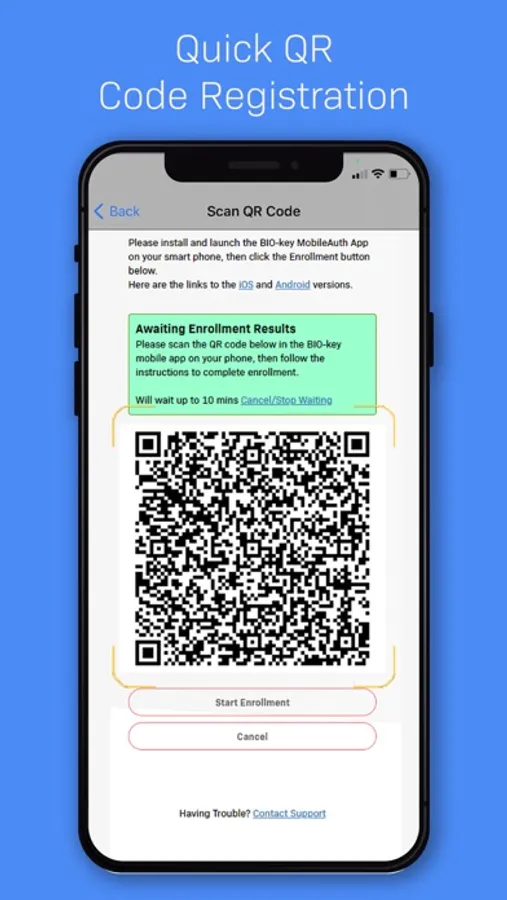 It's easy to get started. BIO-key MobileAuth is easy to use with no new hardware required and a fast QR code registration and enrollment process that can be completed in seconds. Install BIO-key MobileAuth with PalmPositive and activate it in PortalGuard's Account Management page to start experiencing the benefits of fast, touchless, secure access today!