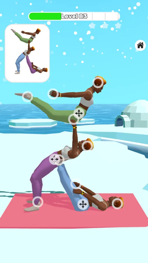 Enjoy the duo's puppet-like behaviour as you move their arms and legs into the correct yoga positions shown in the top corner. Enjoy the zen sounds of the water and zen environment as you have fun posing the fitness couple. In the initial levels, you'll have to exercise your posing abilities by only putting one of the yogis into the yoga poses. Once you've proved you're a master of posing one yogi, you'll move onto the challenging but fun task of posing a yoga couple! As you progress, the poses get more difficult and some gym equipment will be introduced to spice things up. Finding the balance is the key to solving the yoga poses!