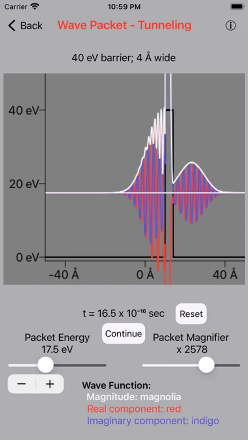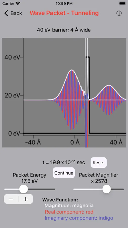 8) Wave packet after tunneling through barrier - right side amplified by magnifier