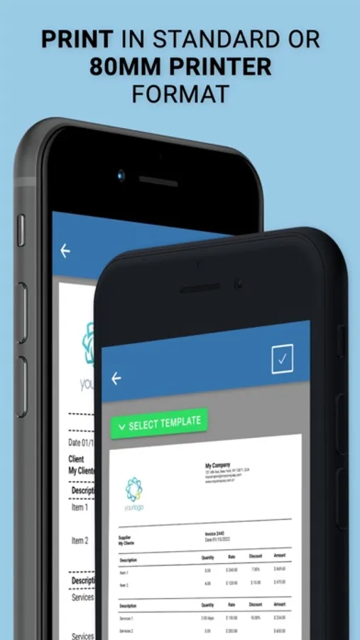 Add the signature of your company and your customers to the receipt, invoice, estimate and credit notes.