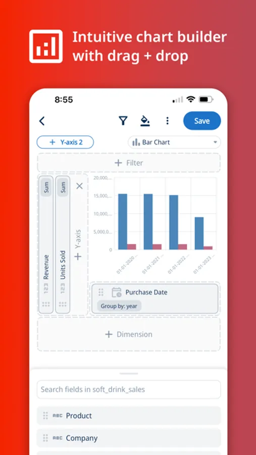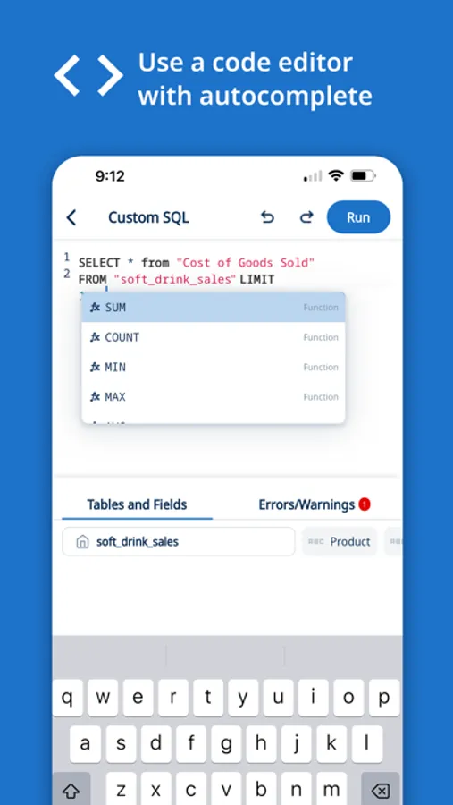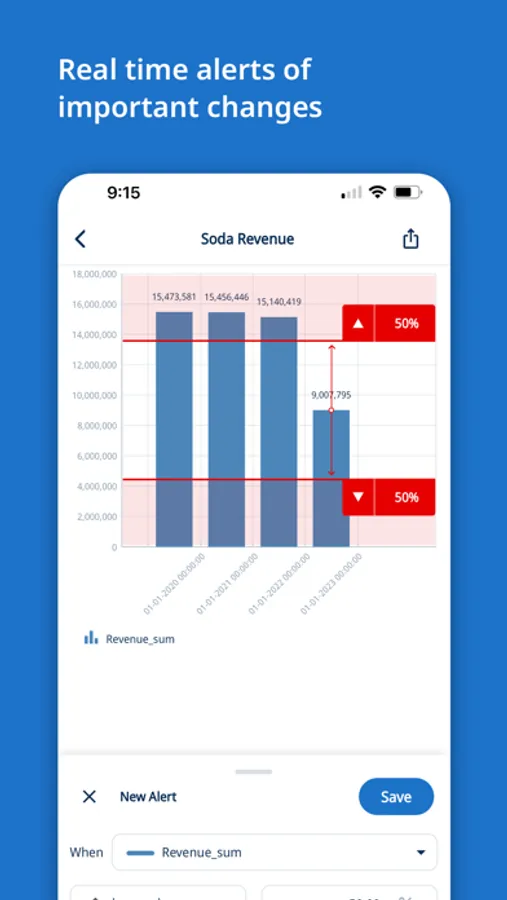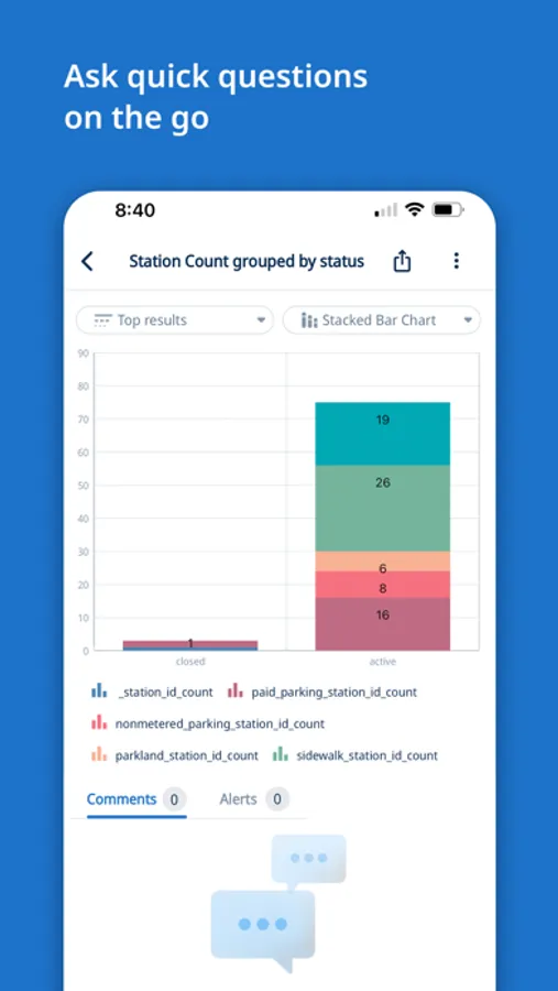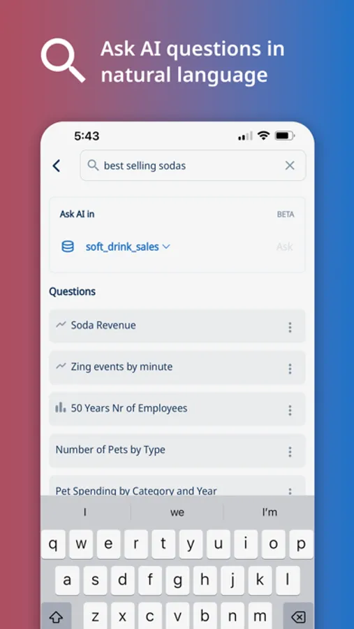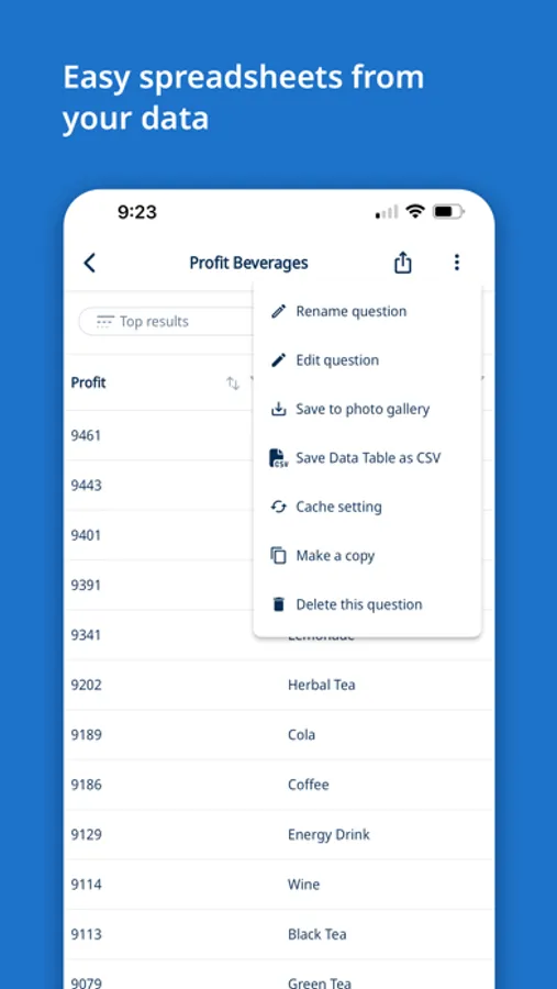 Choose from a range of chart types and tables to visualize answers to questions from your phone, and save graphs to your phone's gallery to use in emails, presentations, and more. Save graphs and drop them into Slack, Google Slides, and PowerPoint to get work done anywhere.