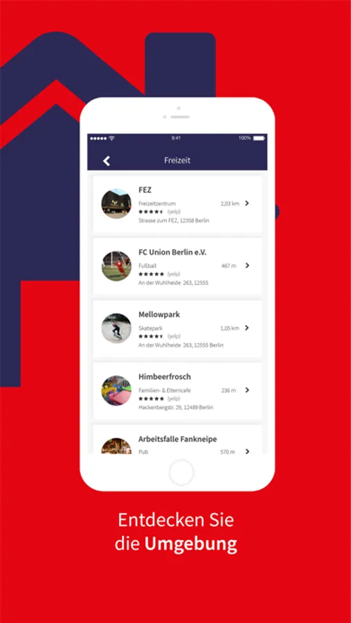 Informieren Sie sich z.B. über Geschäfte, Ärzte, Erstatten und über die Öffnungszeiten in Ihrer unmittelbarer Umgebung.