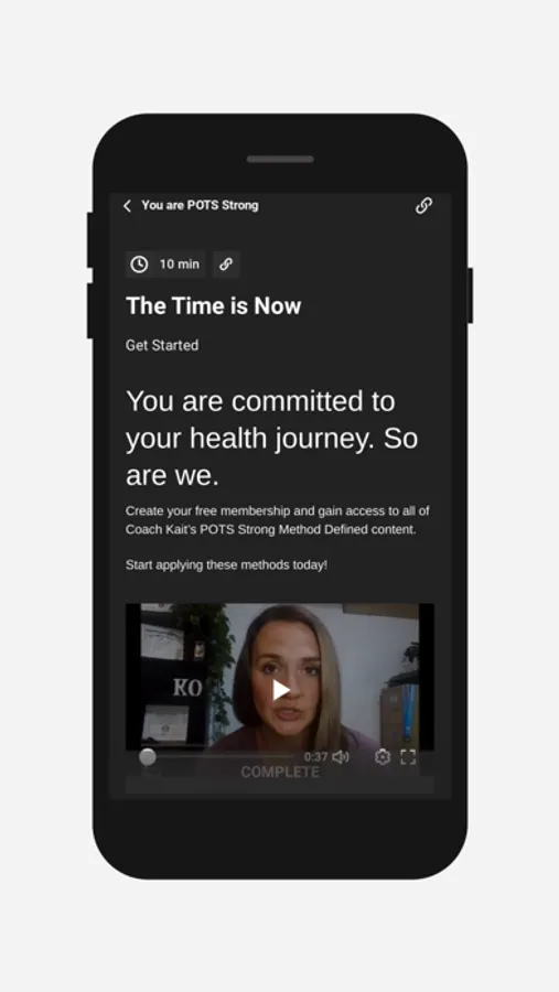 A goal oriented four week course offering daily lessons, workouts, access to the POTS Strong Online Community and the accountability and personal feedback from your POTS Strong Coach. Learn how to apply the POTS Strong Method in achieving your optimum quality of life. Physician Consent required. Minimum 3-month commitment. Visit https://ko-wellness.net/potsstronginquiry/