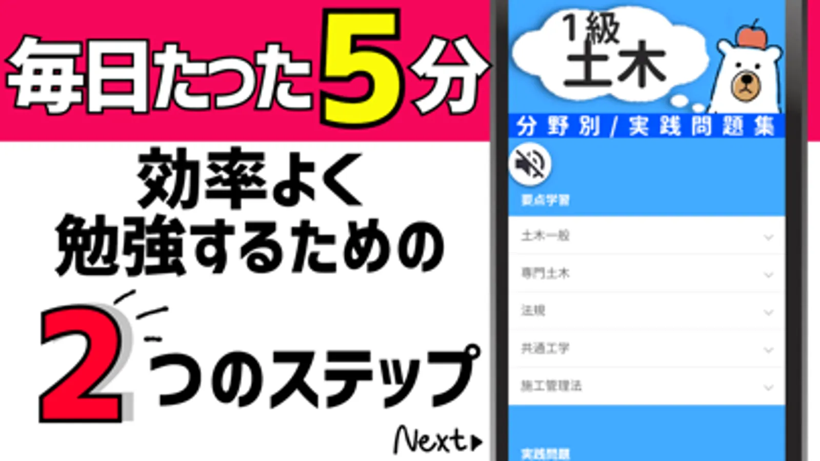 土木施工管理技士の1級対策、分野別問題アプリです!