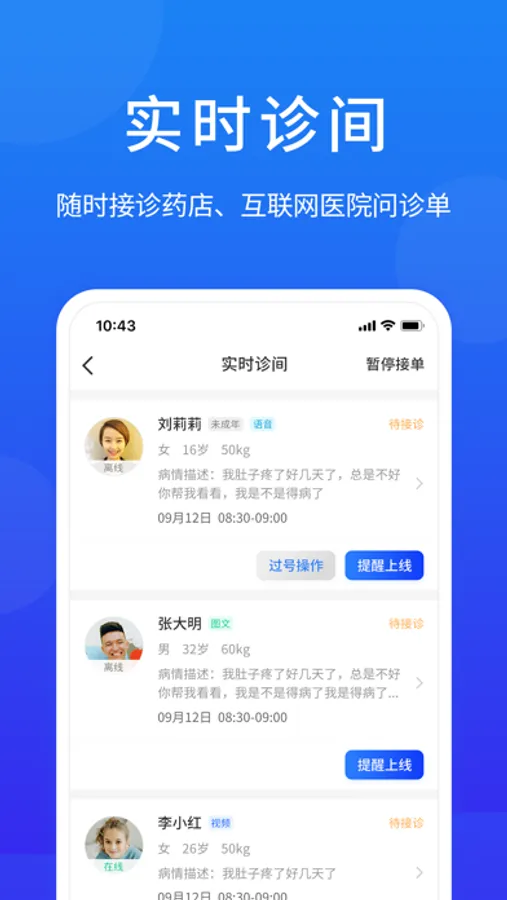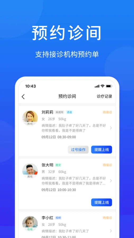 旨在为中国数百万家医疗机构的 400 多万医师提供在线图文接诊服务工具,随时服务民众的同时增强医患粘性。