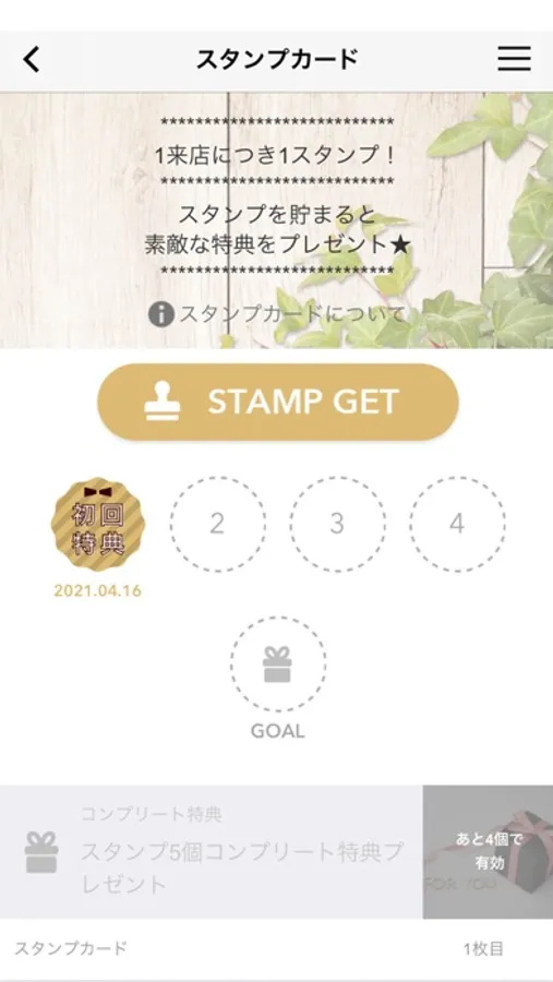 ご来店でスタンププレゼントいたします。