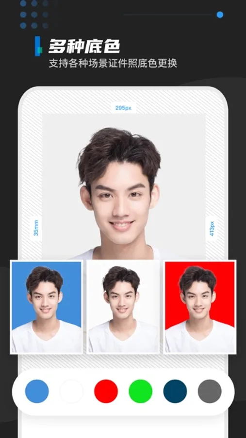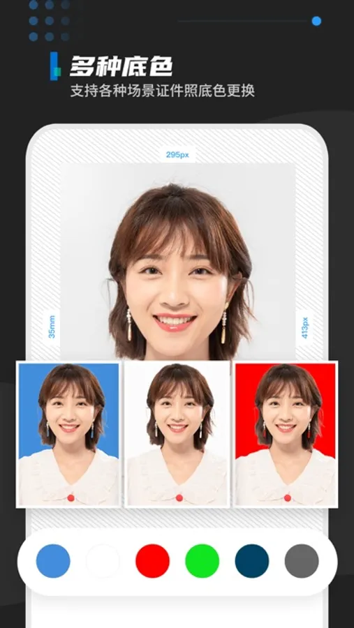 证件照很难拍?在家就能轻松搞定!专业的全自动智能证件照相机,支持人像自动抠图,自动美颜,底色更换,尺寸选择,证件照app自动生成,无论是常用尺寸(一寸照,二寸照),还是各种考试证件(教师资格证证件,执业医师资格等),又或是各国签证照片,都能为您制作出符合标准的证件照,适应多种证件照需求的拍摄。