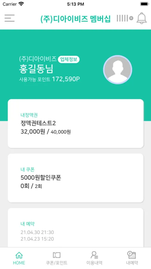 고객이 이용내역, 쿠폰, 포인트, 예약시간 등을 앱을 통해서 확인 할 수 있습니다.