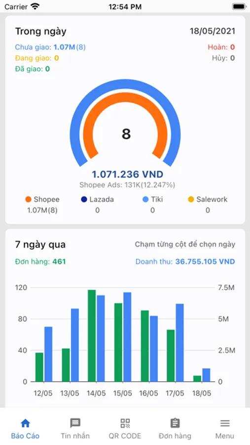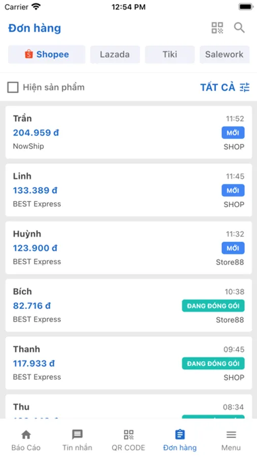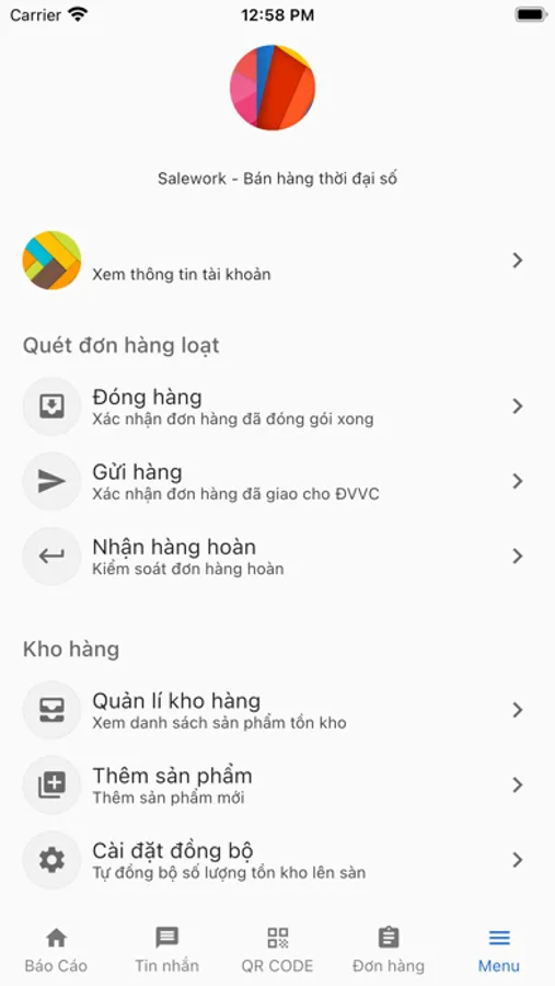 Khâu quản lý kho hàng cũng vô cùng đơn giản với tính năng quét mã QR. Salework App sẽ thống kê đầy đủ trạng thái đơn hàng, tình trạng vận chuyển, lịch sử đơn hàng, cập nhật đơn delay, đơn hủy theo thời gian thực tế. Thông tin kho hàng sẽ được cập nhật để tự động đồng bộ đa sàn giúp bạn dễ dàng kiểm tra đối soát đơn hàng. Bên cạnh các đơn hàng trên sàn TMĐT, đơn ngoại sàn cũng được dễ dàng xử lý nhờ tính năng tạo đơn ngoại sàn và kết nối với đơn vị vận chuyển.