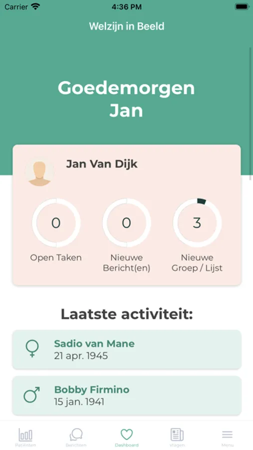 Welzijn InBeeld is de app waarmee wijkverpleging, thuiszorg, apothekers en huisartsen onderling overleggen over hun patiënten en cliënten. Met de app kunt u ouderen en kwetsbaren die niet bij de huisarts komen preventief monitoren. En zo hun ‘Welzijn in beeld’ brengen. Hiermee kunnen we medische, psychische en sociale problemen voorkomen.