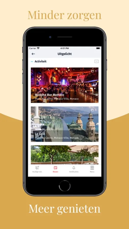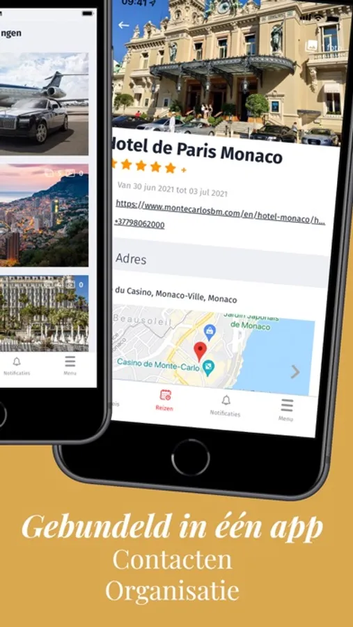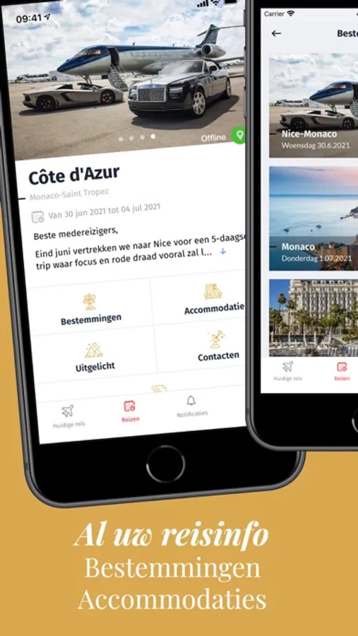 Reisapp die uw volledig gedetailleerd programma weergeeft dag per dag met alle contactgegevens, vluchtinfo, reisdocumenten, nuttige reisinfo en deelnemers.