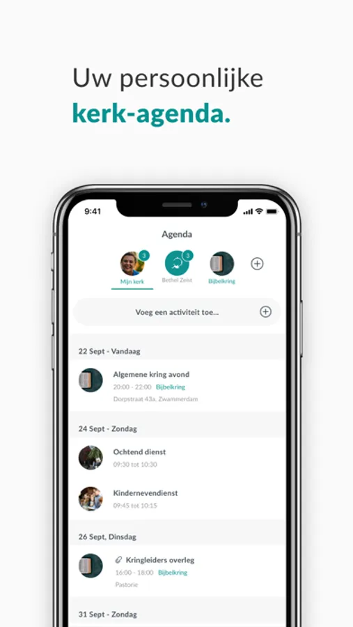 Dankzij onze unieke groepenstructuur helpen wij kerken beter te communiceren. Met de hele gemeenschap, maar ook onderling. U kunt zelf groepen toevoegen en mensen daarvoor uitnodigen. Een slimme timeline zorgt er voor dat iedere gebruiker persoonlijke en relevante informatie ziet.