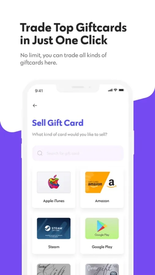 Trade up to 25 different gift cards within the app, including Steam, Apple iTunes, Sephora, Vanilla, Amex, Nike, Nordstrom, and many more.