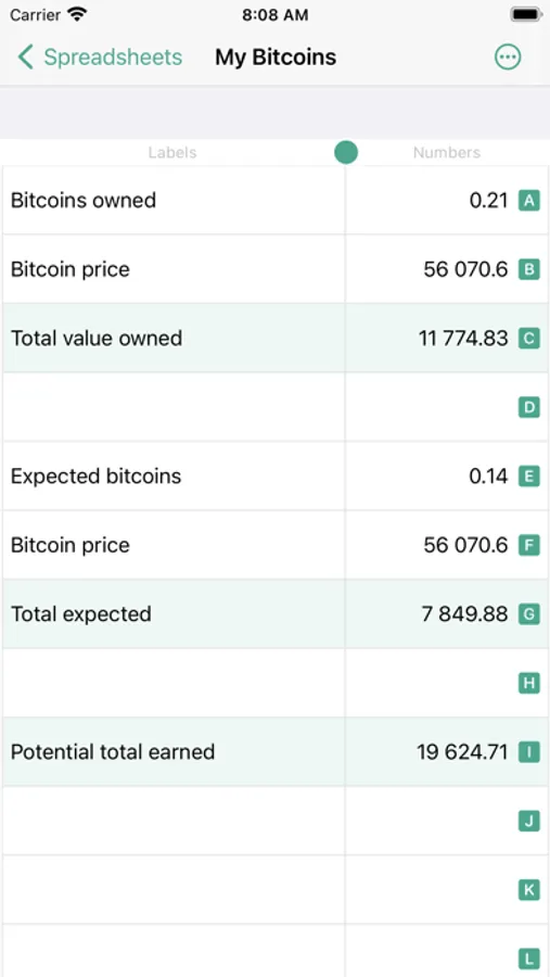 - First column is dedicated to labels, second column is dedicated to numbers and formulas.