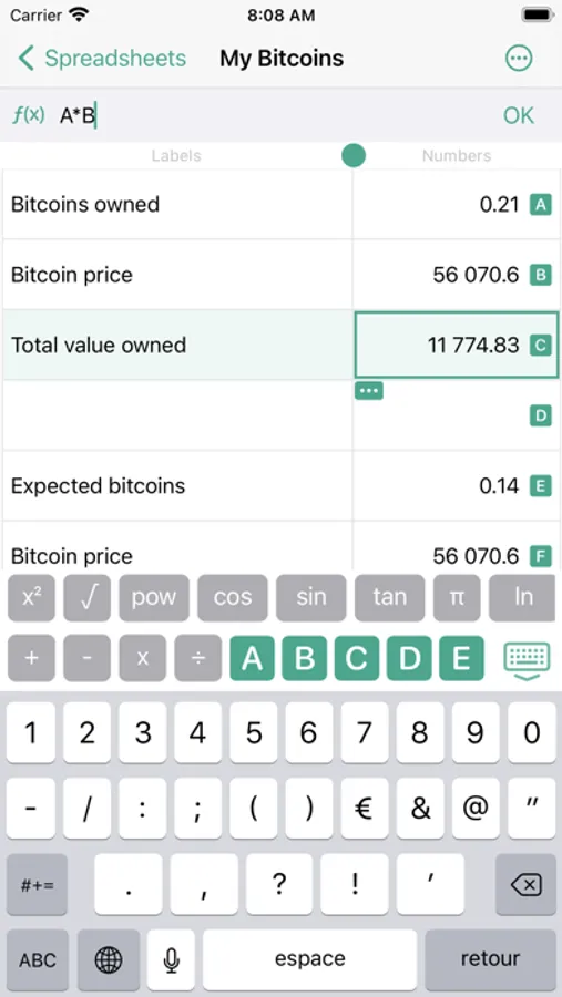Easily create calculation sheets: it is much more simple to use MiniXL than a calculator!