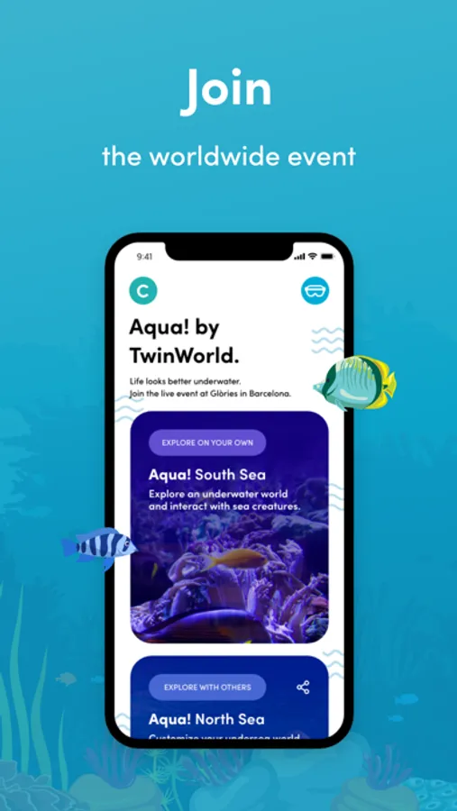 Dive into a colorful AR world of coral and sea creatures. Join the live event at Glòries in Barcelona from Aug to Sep, 2021. Life looks better underwater.