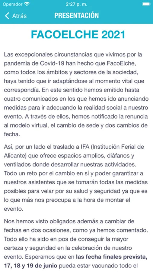 App oficial del congreso FacoElche 2021.