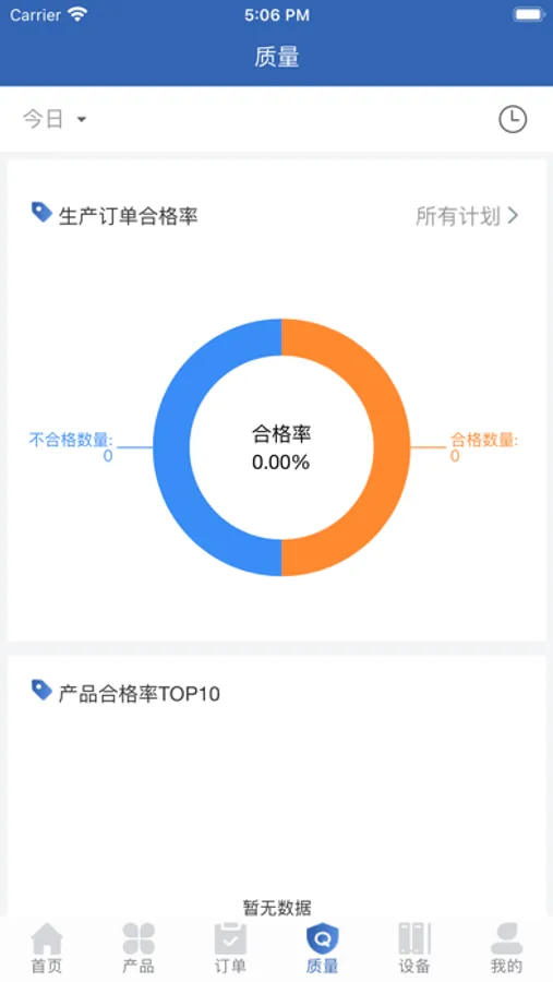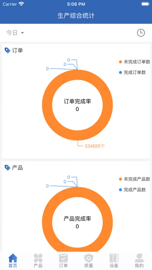 1、生产首页:不同维度的生产绩效统计,直观了解计划和产品数据。