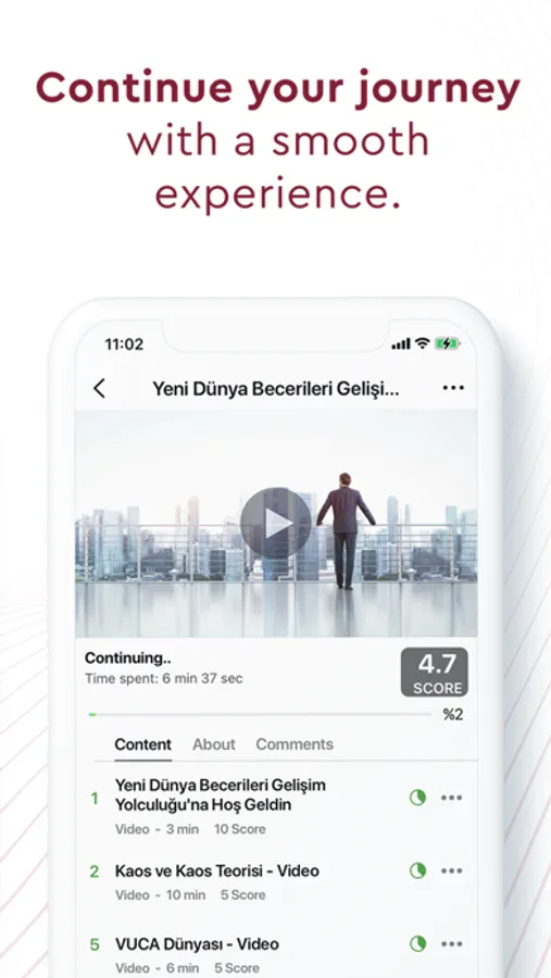 With this application, you can access all your courses and learning plans, download videos for offline view, answer surveys and exams, participate on the social groups available.