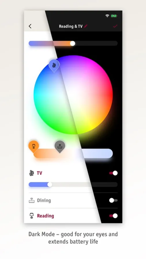 Install the app and start controlling your light right away – no registration and no account required. You will only need an account for the use of specific functions like voice control or on-the-go control.