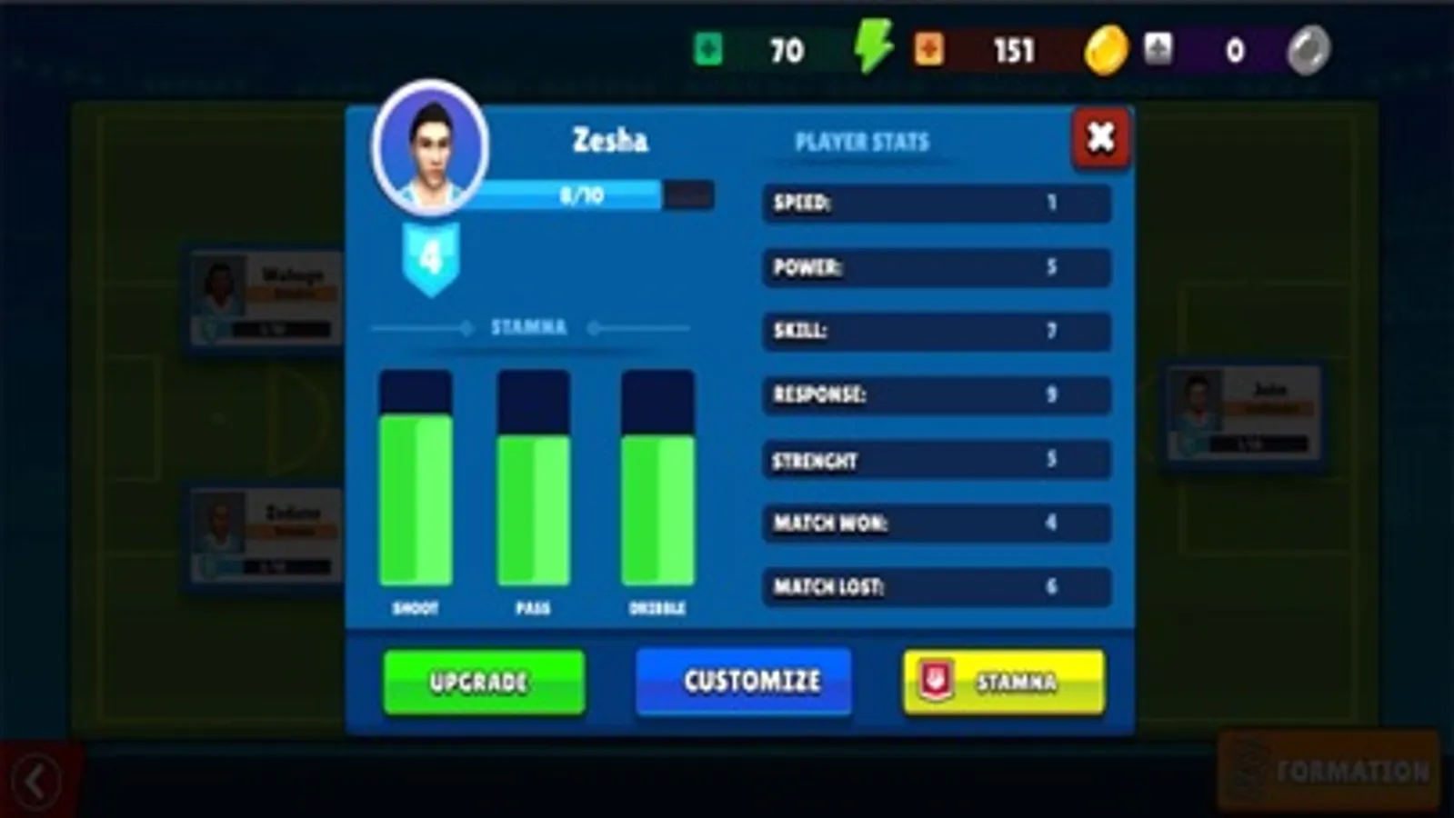 * Upgrade players to reach their full potential and showcase their skills on the football pitch!