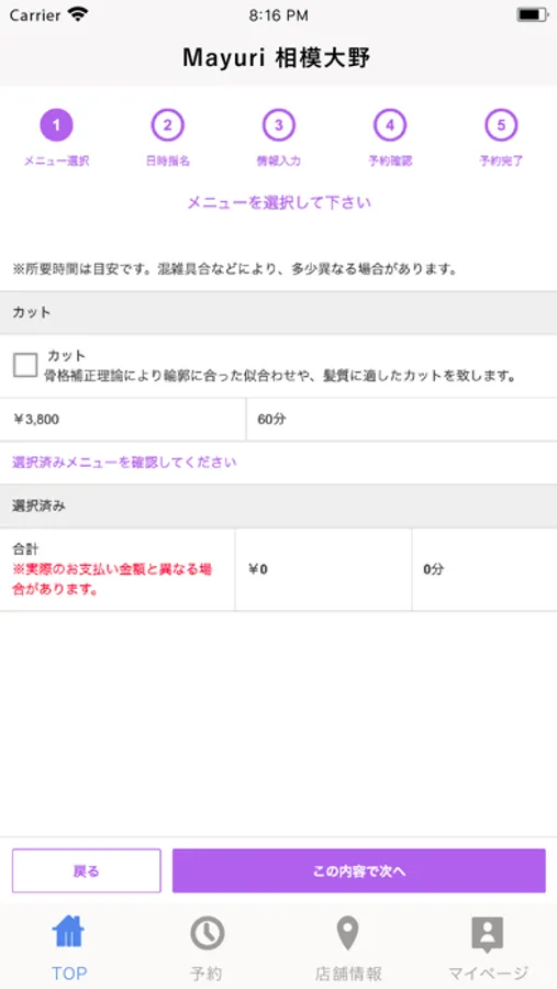 予約状況の確認やキャンセルがマイページ上から行えます。スタッフの登録が出来るので前もって担当者を登録しておけばマイページからスムーズな指名予約が可能です。