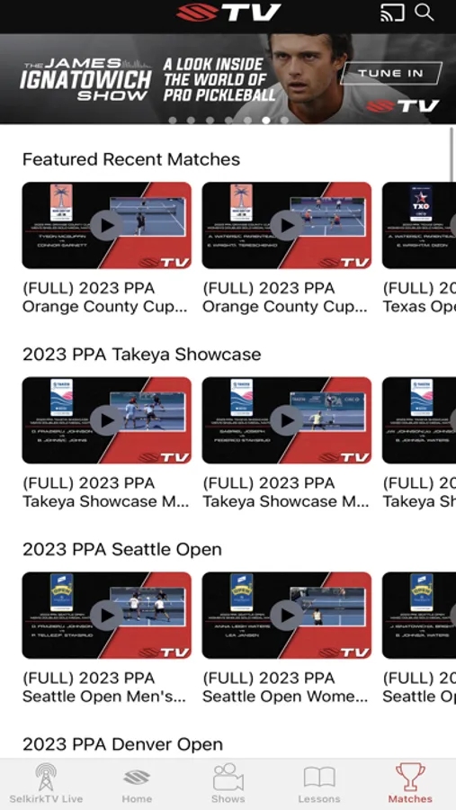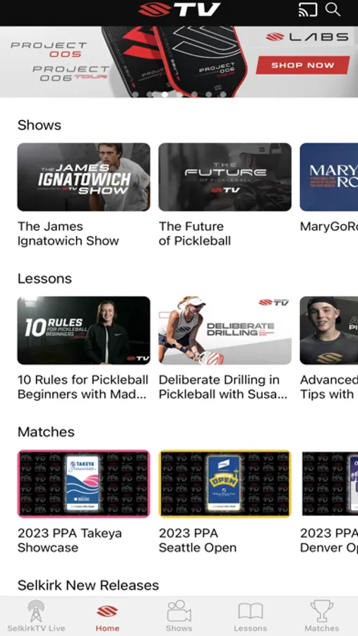 Created to bring the best of Pickleball to your smartphone, tablet, and big screen TV, Selkirk Sport launches another first in the industry—Pickleball’s original and only Free TV App.