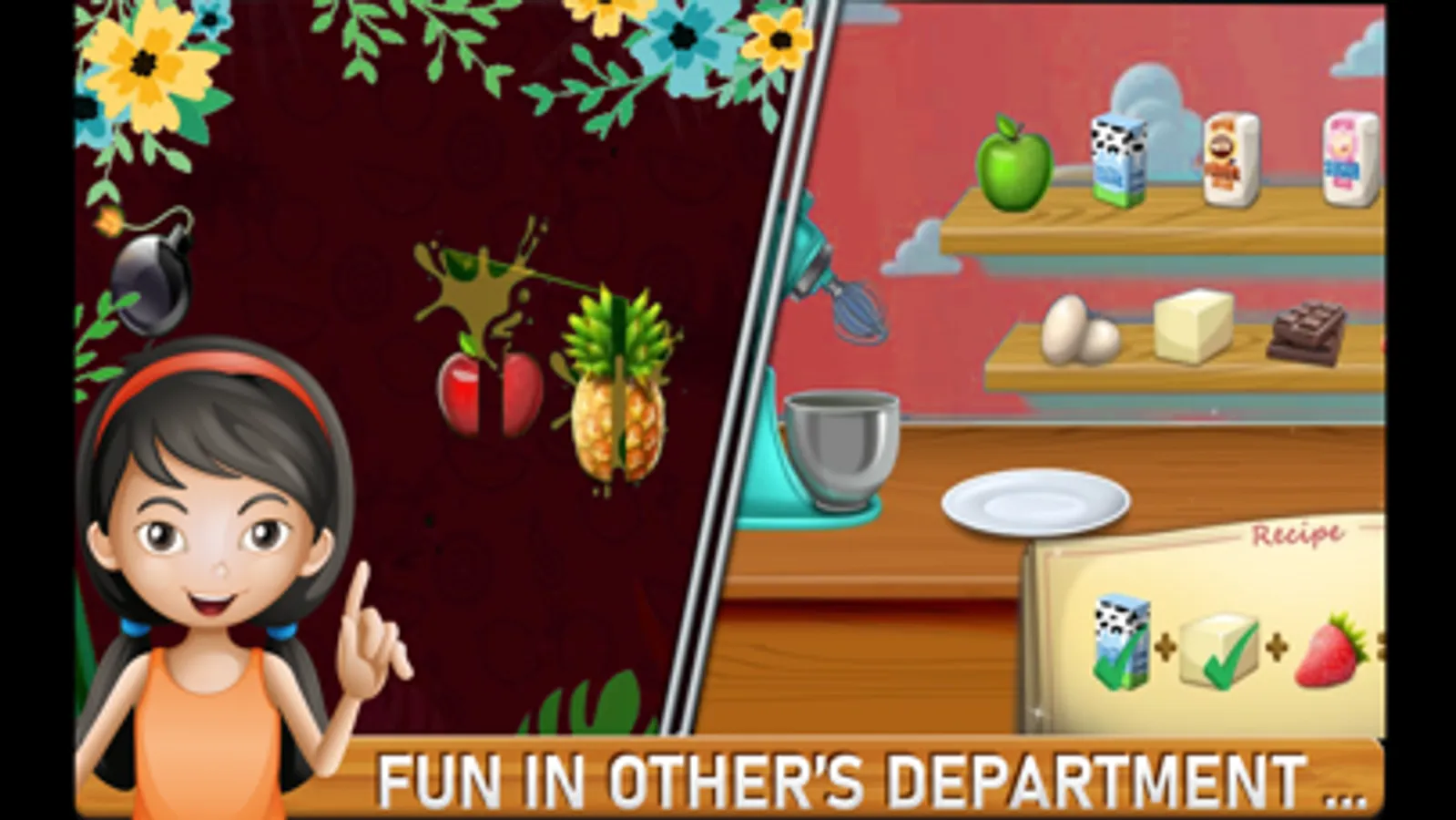 - fruits slice, vegetables, toys, sweets all items time management
