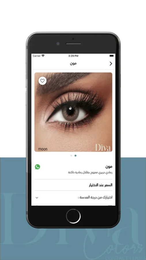 Diva lenses application with its friendly interface makes it easier for you to collect the lenses you wish for. Just open the app then choose the color and degree you want from the lenses after that add it to your cart. Proceed the measures by entering your location and info to receive your order ASAP.