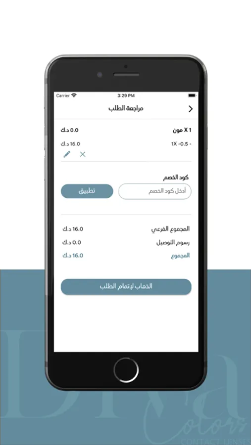 يسمح لك تطبيق ديفا لينس بفضل واجهة استخدامه السهلة العثور على العدسات التي تريدها بسرعة. ما عليك إلا فتح التطبيق ثم اختيار لون العدسة والدرجات المرغوبة ثم أضفها لعربة تسوقك. أكمل إجراءات الطلب بإدخالك موقعك والمعلومات الأخرى المطلوبة للحصول على طلبك في أقرب وقت ممكن.