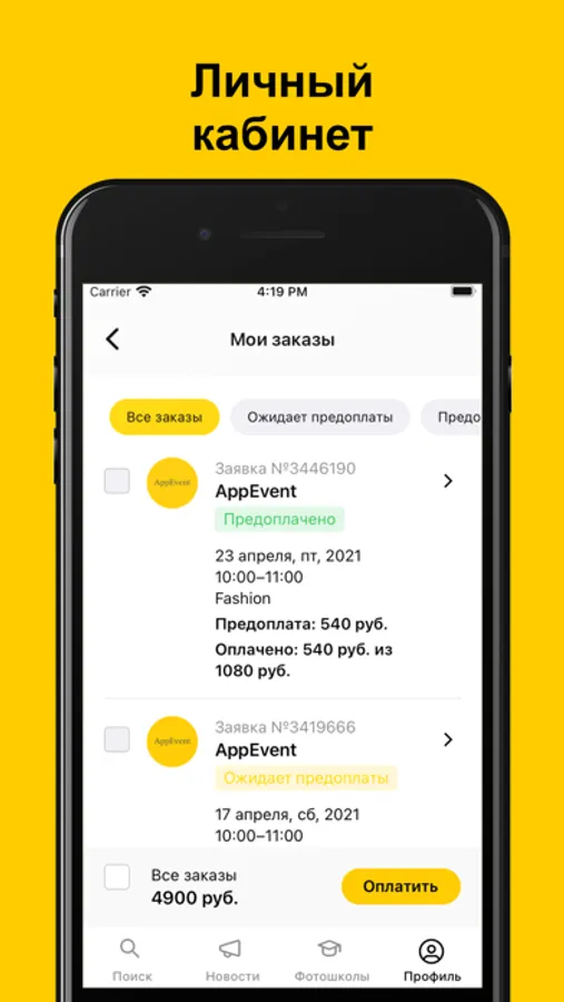 — Личный кабинет с историей всех заказов в студиях, даже не сделанных в каталоге