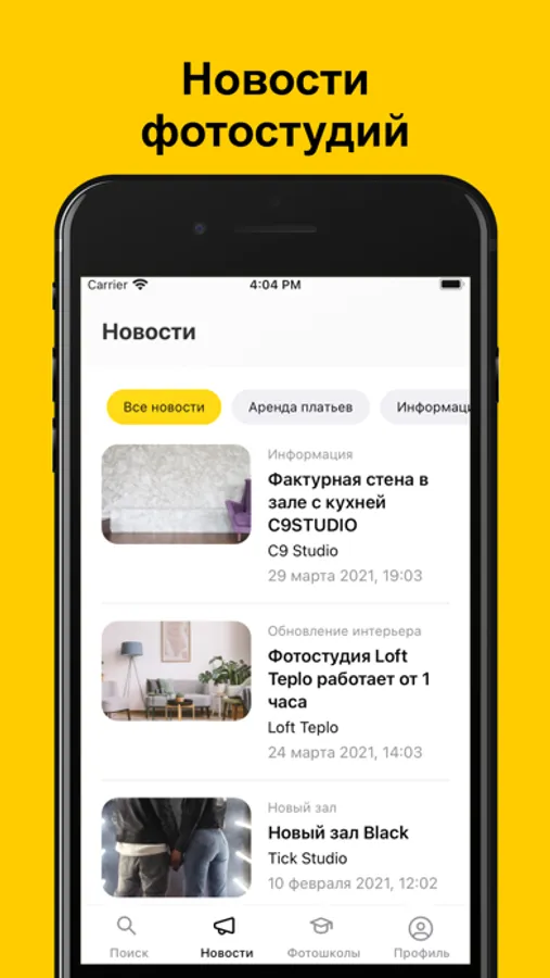 Каталог интерьерных фотостудий в одном приложении.