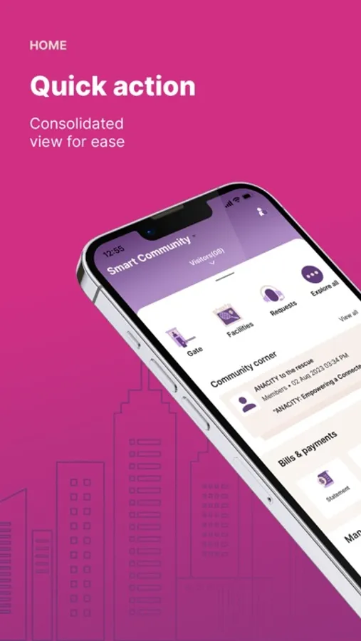 Right at the comfort of their homes, residents can perform various actions on the ANACITY app including managing their visitors, staff, raising complaints/requests, pay service charges and other dues, book facilities, communicate and share important updates with other residents, etc.