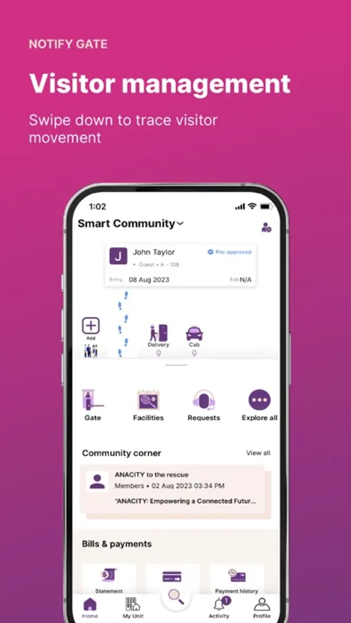 - With the additional security solutions offered by ANACITY, the security of your gated community will only strengthen multifold. Using the Visitor Management feature, pre-approve, approve or deny guests, visitors, and staff with just a click.