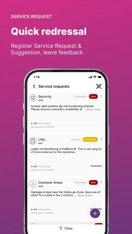 - Using the ANACITY app, you can easily raise complaints/requests. If any asset is misfunctioning, you can simply scan the QR Code generated to the particular asset and send it to the Facility Manager of your gated community. They will quickly receive the details of the asset and fix it. You can also track the progress and if the issue is not fixed during the stipulated time, the complaint will be automatically escalated.
