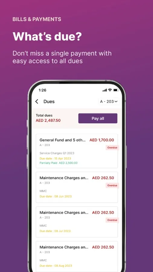 - Collect service charges and dues via the app and send automatic reminders to the defaulting residents.