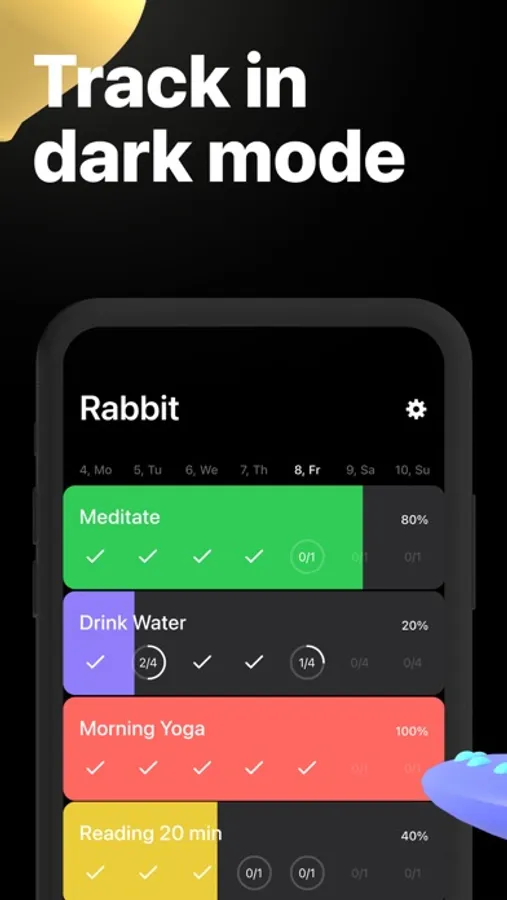 • Streamlined Interface: With an intuitive design, Rabbit makes habit building feel natural. Whether it's your morning routine or evening ritual, we've got you covered.
