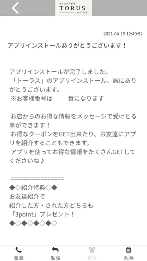 トーラスのアプリをSNSを通じてお友達に紹介する事ができます。