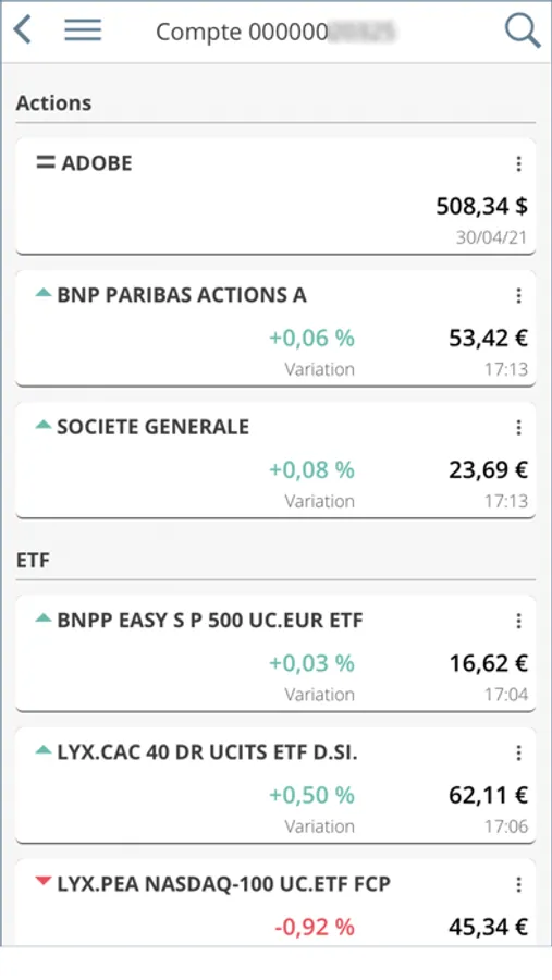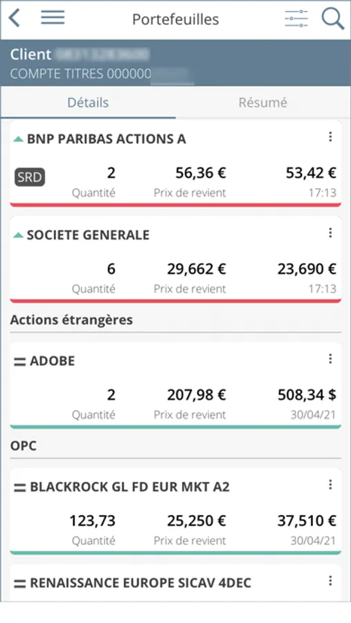 - Vous accédez à vos portefeuilles titres, valorisation, historique des opérations