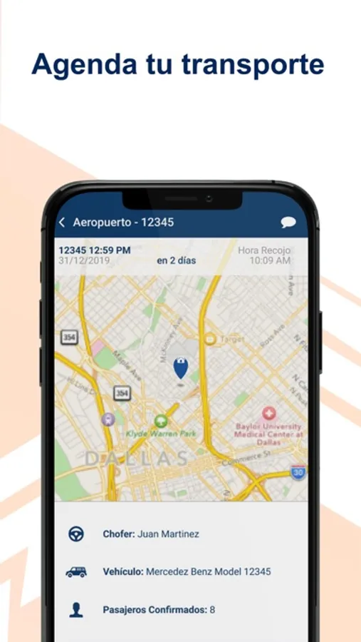 This app allows registered users to request the transport service to the different available destinations, verify and update their information, see the real-time location of the vehicle that is going to perform the transport service.