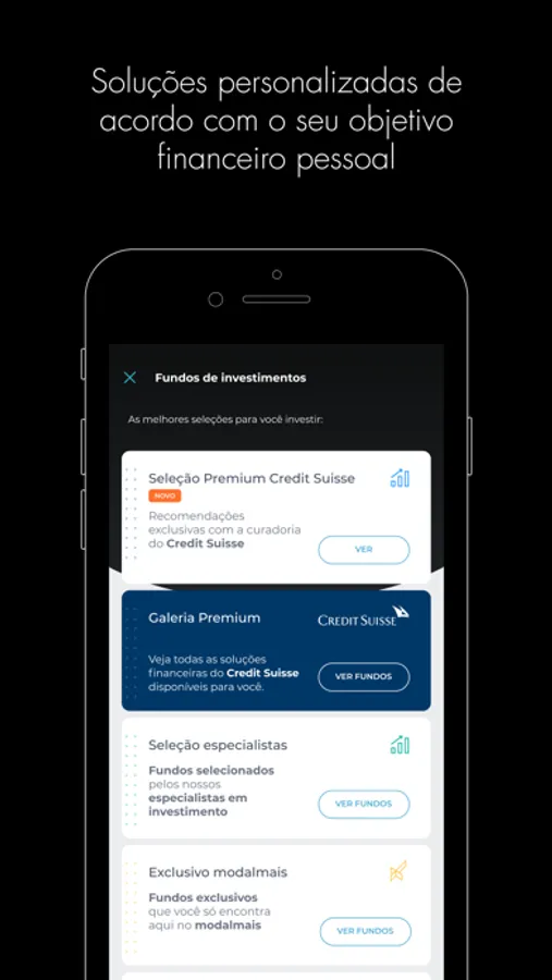Soluções personalizadas de acordo com o seu objetivo financeiro pessoal;