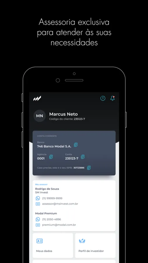 No Modal Premium você terá um atendimento pautado na exclusividade, com soluções financeiras criteriosamente selecionadas para preservar e desenvolver o seu patrimônio de forma inteligente: