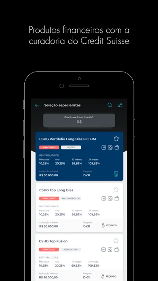 Acesso a prateleira de produtos exclusivos do Credit Suisse