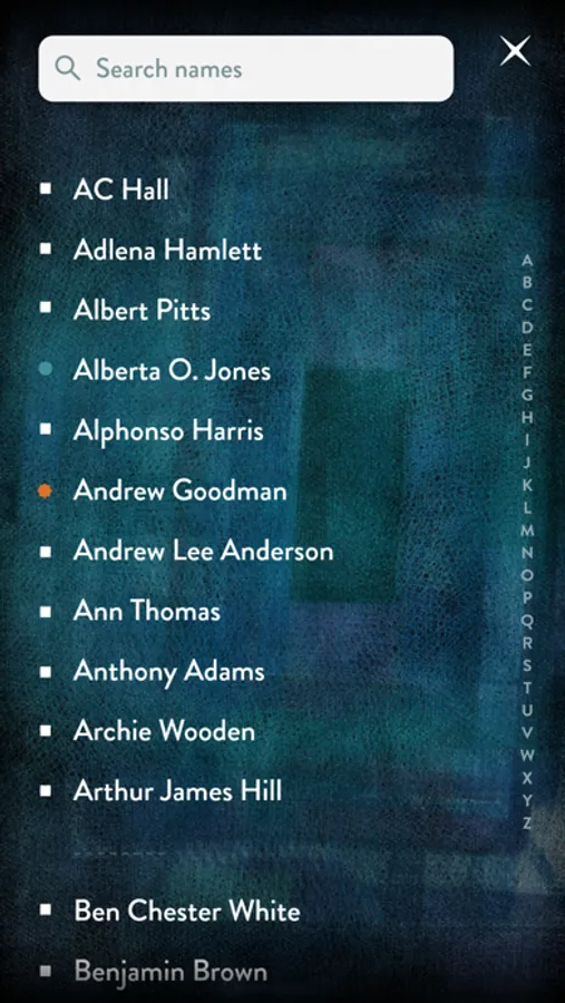The Un(re)solved AR app is to be used when visiting the traveling installation exhibit of the same name. Using your smartphone, you’ll go on a guided journey to learn about the people on the list. A soldier coming home to his wife. A member of the Passamaquoddy Tribe of Maine. A teenage basketball star who was shot in what has come to be known as the Orangeburg Massacre. Louisville’s first female prosecutor. Throughout the experience you’ll be invited to say the names of the victims to bring their stories out of the past and into the present.