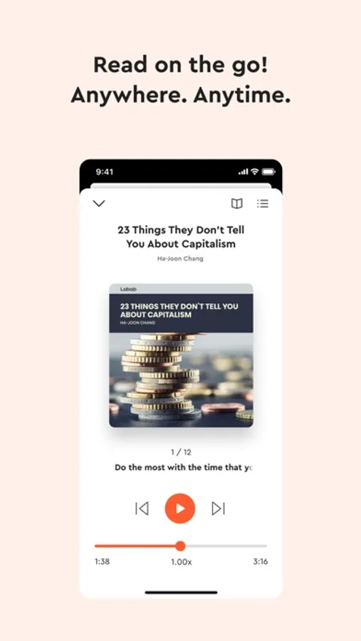 Intelligent Progress Tracking: Lobab saves your progress across books and audiobooks, allowing you to seamlessly pick up where you left off, no matter how many books you're reading.