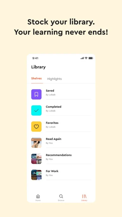 Share Your Reads: Lobab empowers you to build your own libraries, which we call "shelves." Create a shelf filled with textbooks and audiobooks, that resonate with you, then share it with friends and fellow readers. They can follow your shelves and discover the treasures you've curated.