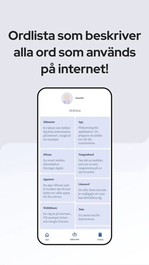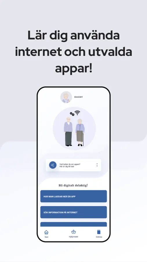 Dagny hjälper dig att träna på att använda internet och utvalda appar.