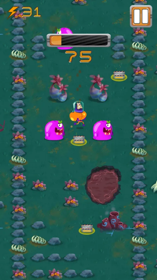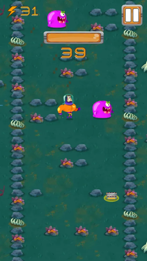 - Evade frightening alien monsters in a mad dash
