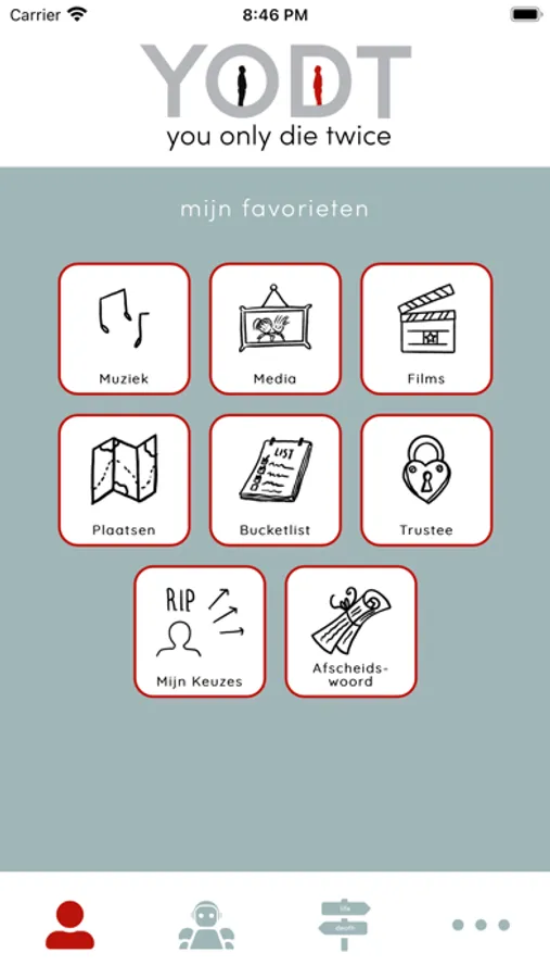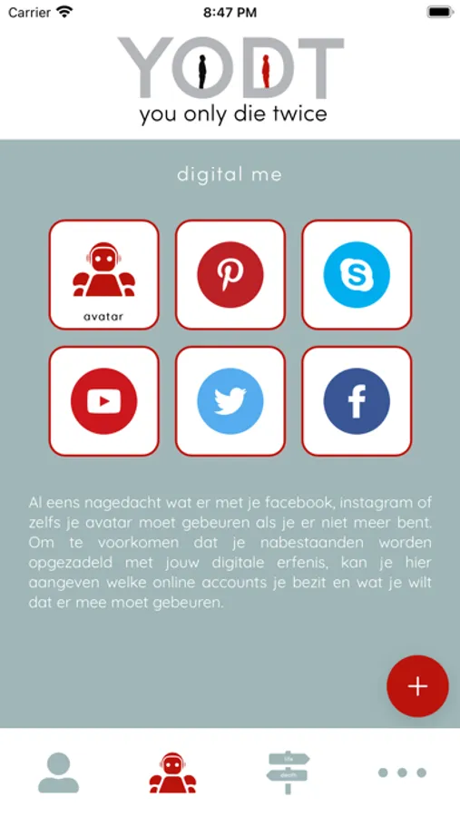 YODT staat voor You Only Die Twice, een keertje ‘in het echt’ en een keertje virtueel en deze innovatieve app biedt je de kans om je (digitaal) afscheid voor jezelf en je nabestaanden vast te leggen.
