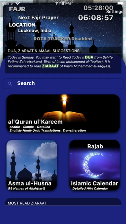 • Most Read Ziarat Automatically Appears in Quick View. So user don't need to search.